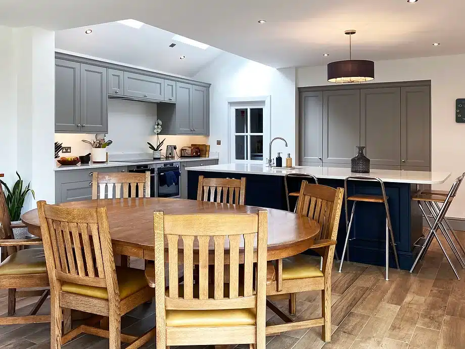 This exacting renovation project perfectly showcases how to balance historic charm with modern functionality. The complete interior rebuild is defined by a blend of sophisticated materials, from bespoke oak joinery to polished concrete floors, creating a tactile and visually engaging aesthetic.