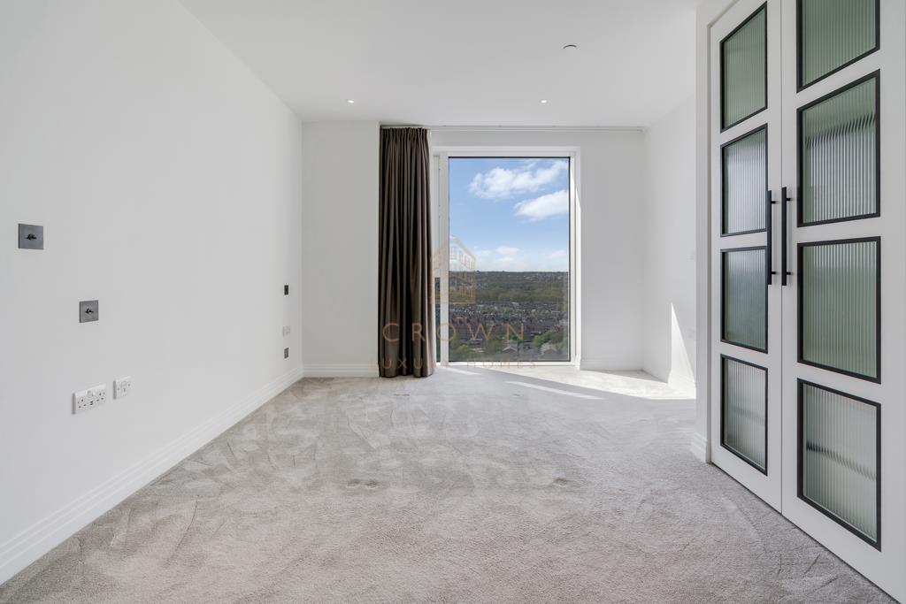 Both bedrooms are generously sized, featuring excellent wardrobe space and enjoying the same impressive views across the city. One bedroom benefits from a stylish en-suite bathroom, while the second offers direct access to the balcony, enhancing the sense of light and openness.