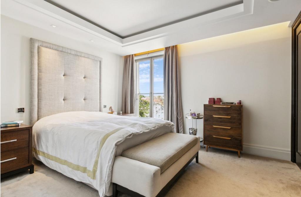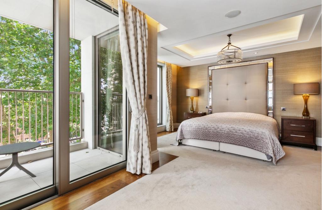 Situated on the fourth floor, the apartment offers a spacious open-plan living and reception area with views over the gardens of Ebury Square. The separate kitchen is finished to a high specification with integrated Gaggenau appliances.