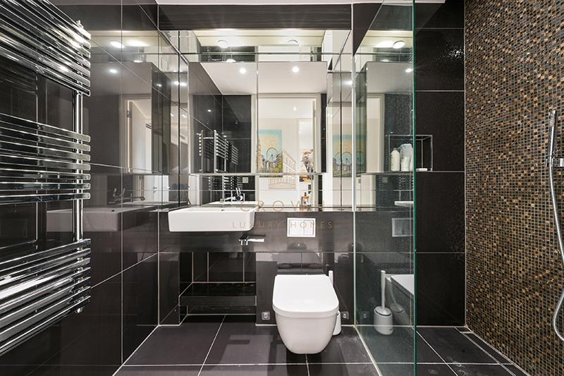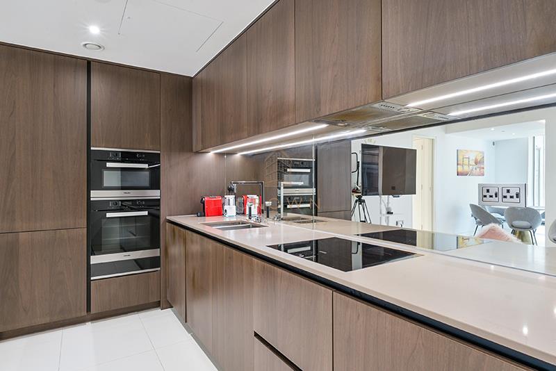 The sleek kitchen is fitted with high-quality integrated appliances, making it as practical as it is attractive.
