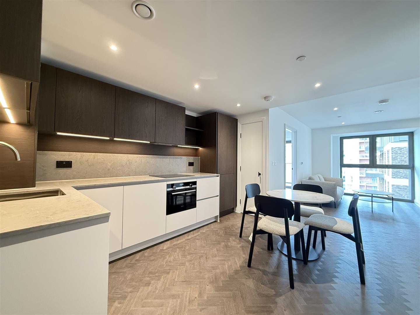 This beautifully presented one-bedroom apartment on the 13th floor of Halcyon House combines modern style with everyday comfort. The open-plan living and dining area is bright and inviting, with floor-to-ceiling windows allowing natural light to fill the space. A sleek, fully fitted kitchen with integrated appliances, polished composite stone worktops, and generous storage makes both daily cooking and entertaining effortless. Underfloor heating throughout the apartment adds an extra touch of comfort.