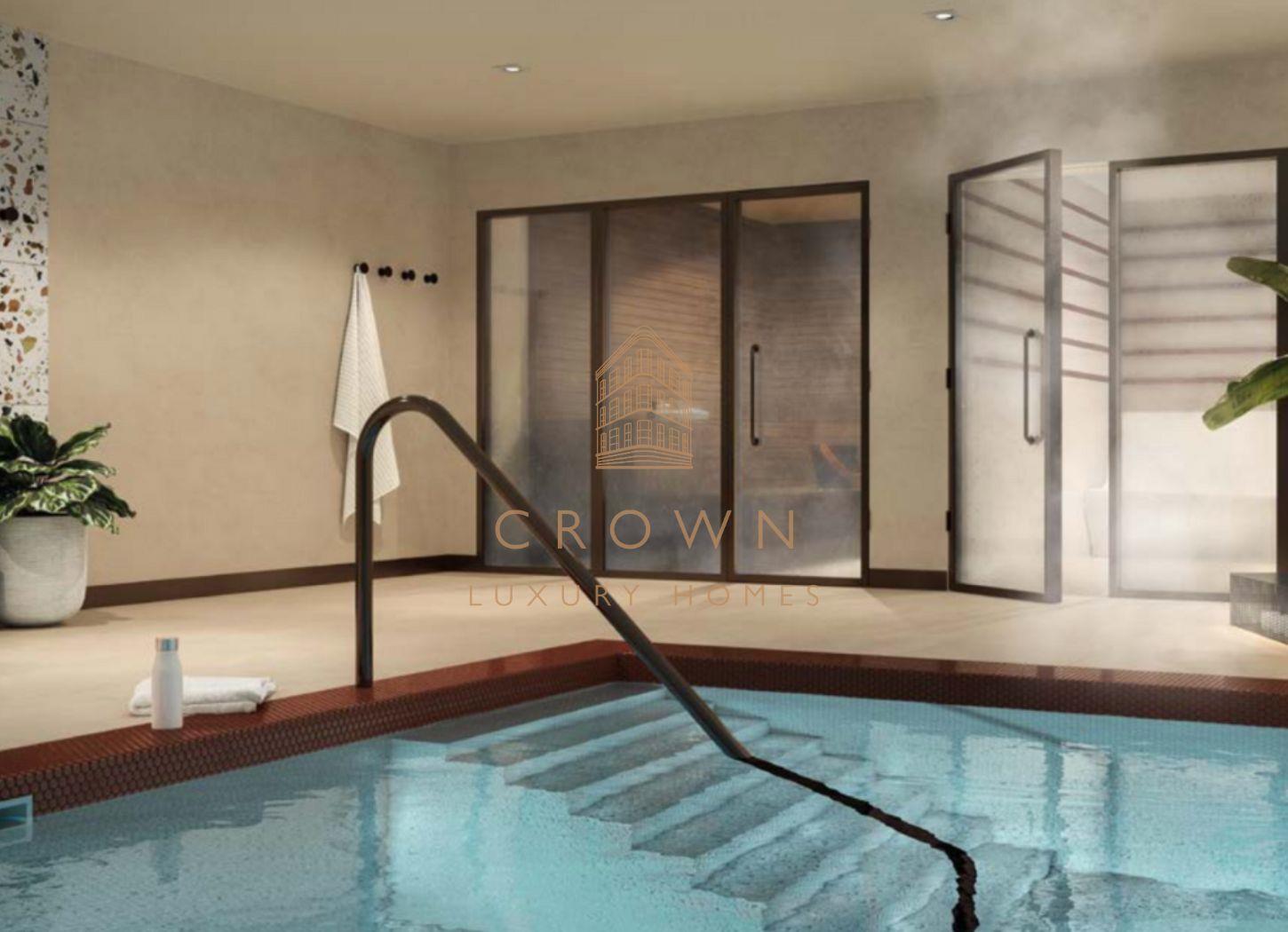 Royal Eden Docks delivers a lifestyle that extends far beyond the apartment itself. Residents enjoy an impressive range of wellness amenities, including a swimming pool, sauna, steam room, fully equipped gym, and even a unique rooftop running track. A 24-hour concierge ensures convenience and peace of mind.