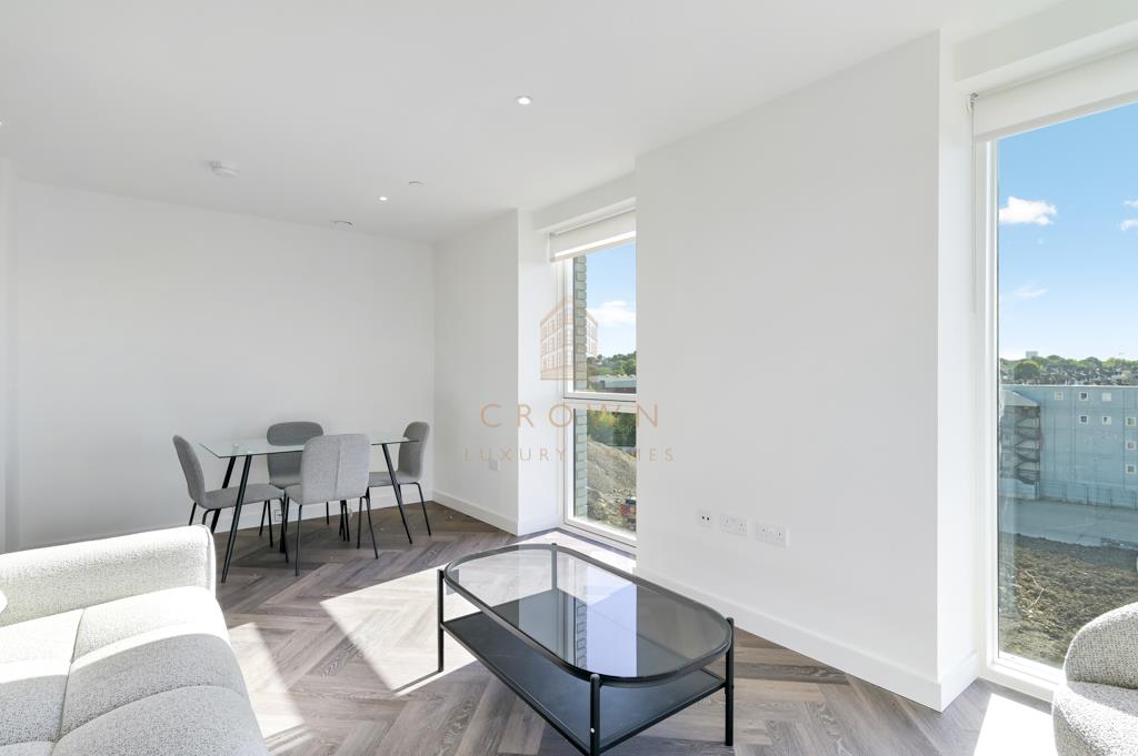 Step into this brand-new, beautifully proportioned apartment on the 5th floor of Lindley House. From the moment you arrive, the expansive open-plan living, dining, and kitchen area delivers an immediate sense of space, further enhanced by floor-to-ceiling windows that fill the home with natural light.