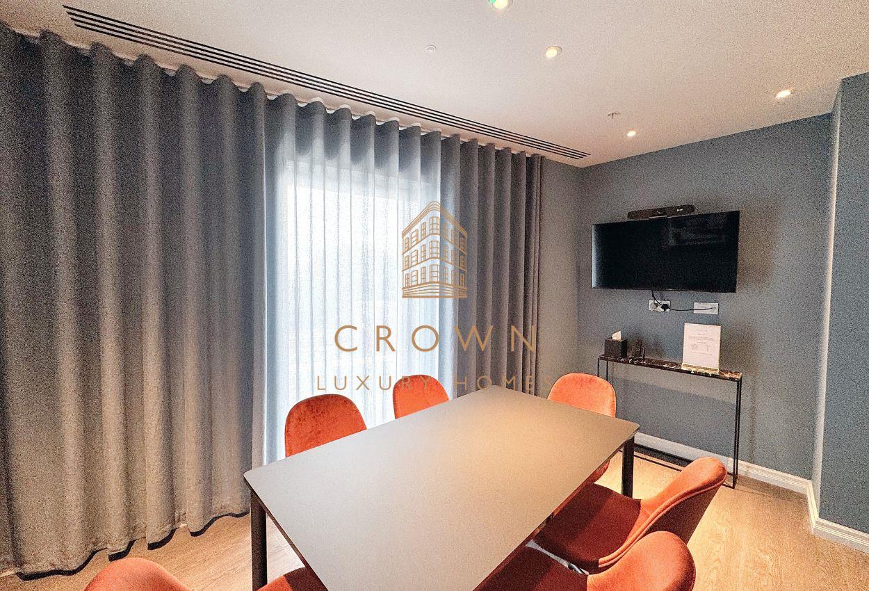 The kitchen has been thoughtfully designed in a practical U-shape, maximising workspace and flow while maintaining a sleek, contemporary aesthetic. Stone worktops, streamlined cabinetry, and premium integrated appliances combine style and functionality, perfectly suited for modern city living.