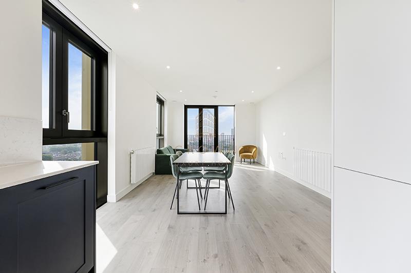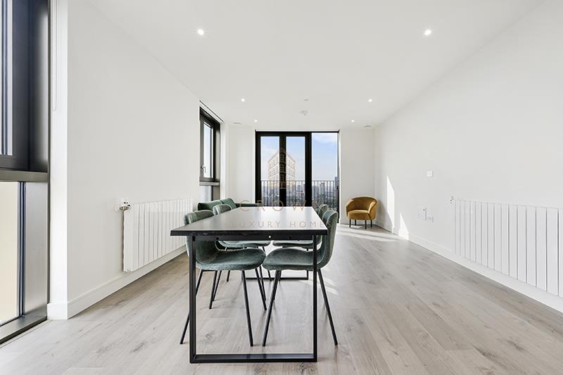 Finished to an exceptional standard throughout, this 18th-floor apartment offers not only beautifully considered interiors but also some of the most striking views in East London—bringing together comfort, elegance and an unbeatable location just moments from West Ham Station.
