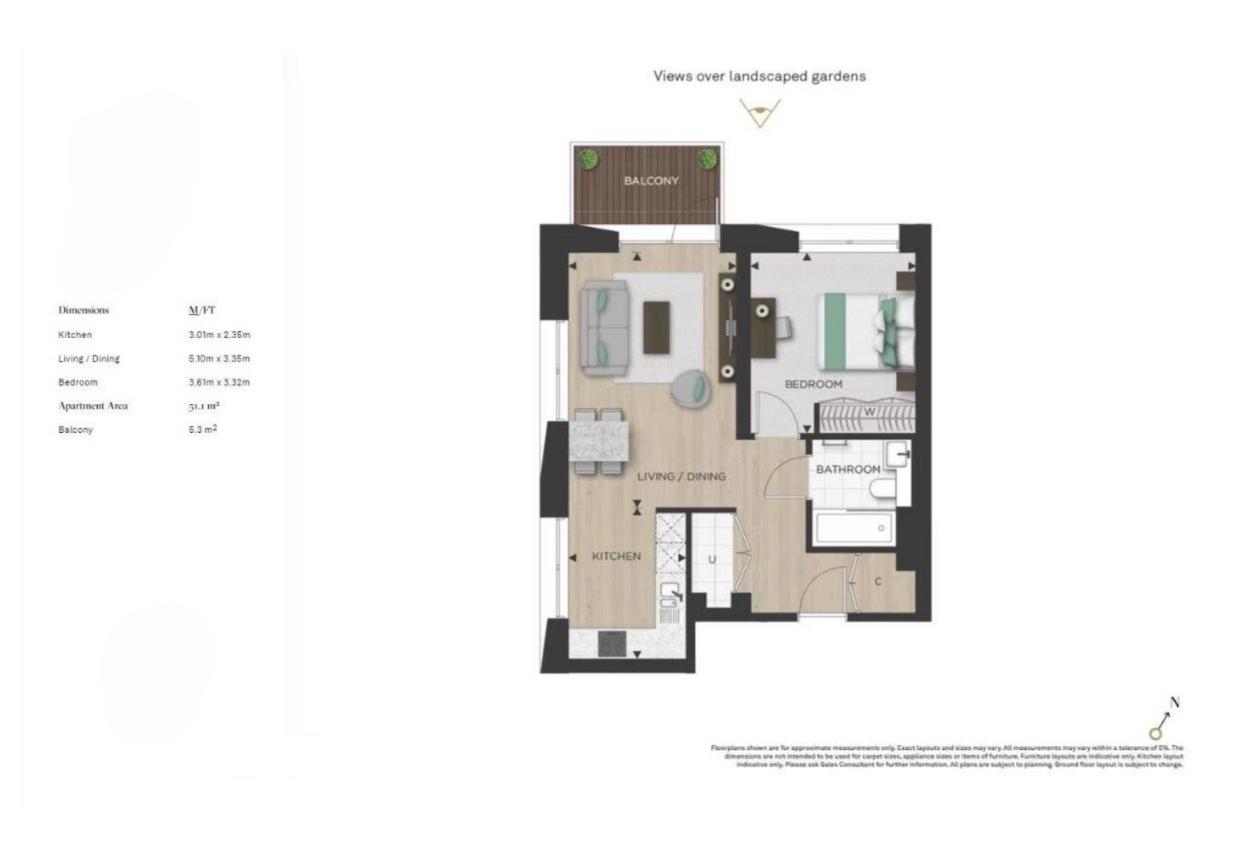 Located on the 5th floor, the apartment boasts a private balcony overlooking the beautifully landscaped communal gardens—an ideal spot to enjoy a morning coffee or unwind in the evening.