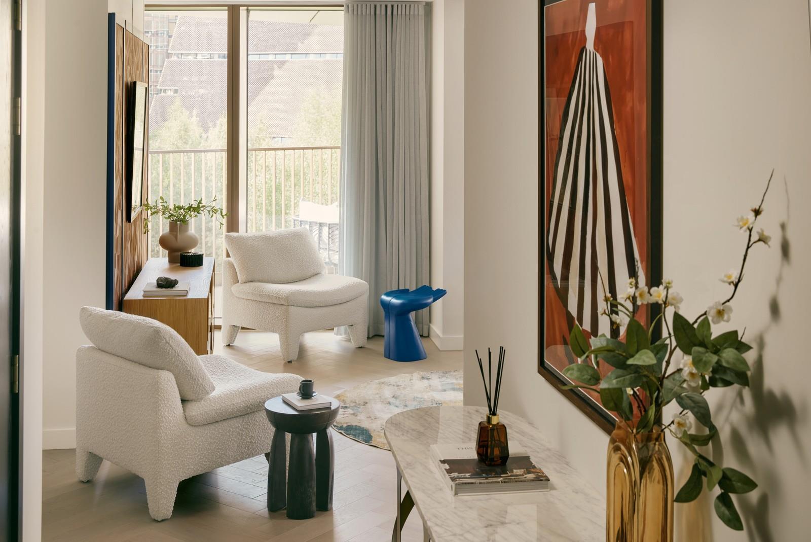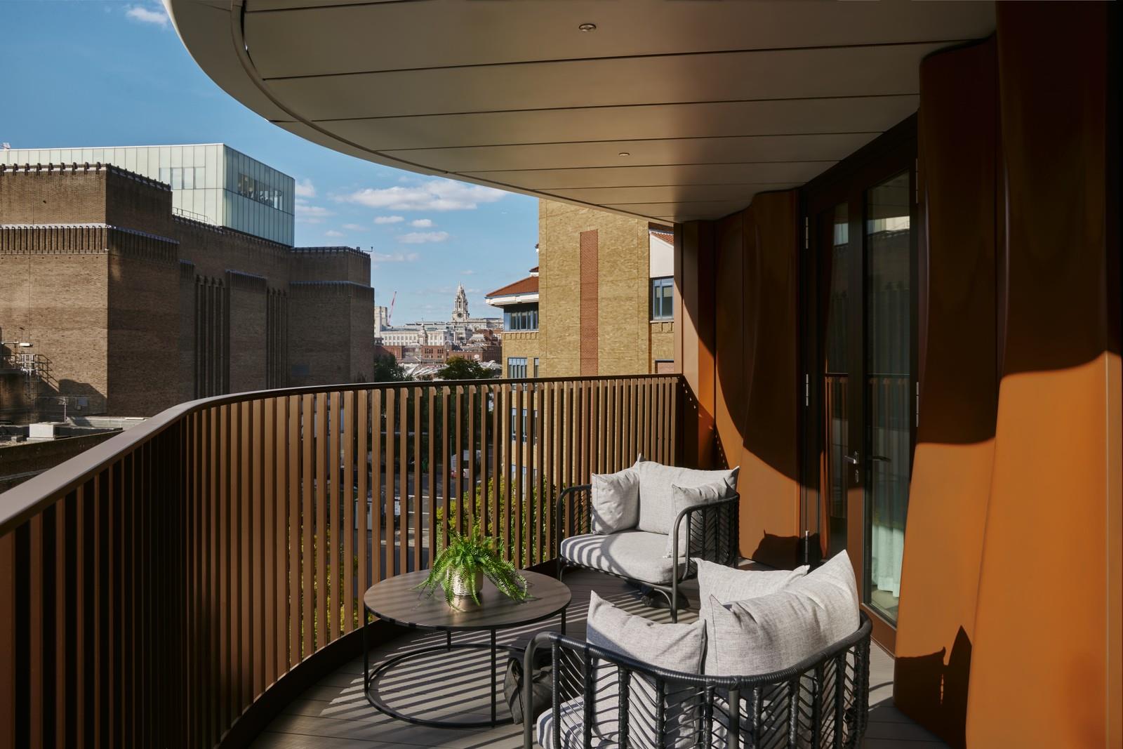 A highlight of these apartments is the elegant, curved balcony, offering a private outdoor space to enjoy the atmosphere of London’s Southbank.