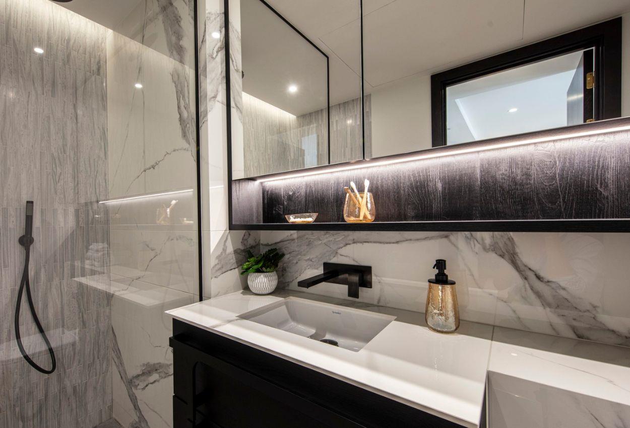 The open-plan living and sleeping area is thoughtfully designed to maximise comfort and functionality. A sleek fitted kitchen with integrated appliances and composite stone worktops enhances both style and practicality, while the bathroom features elegant finishes, excellent lighting, and ample built-in storage.