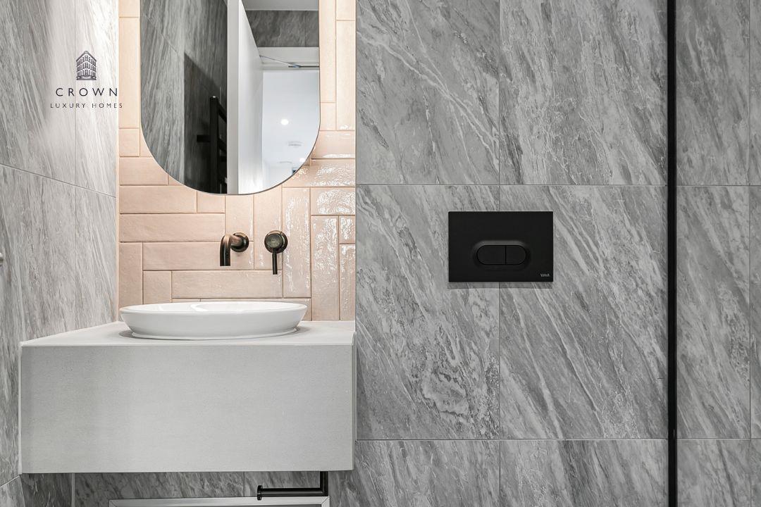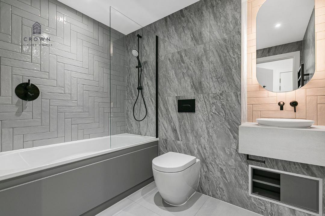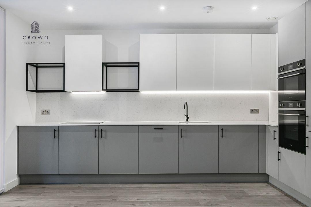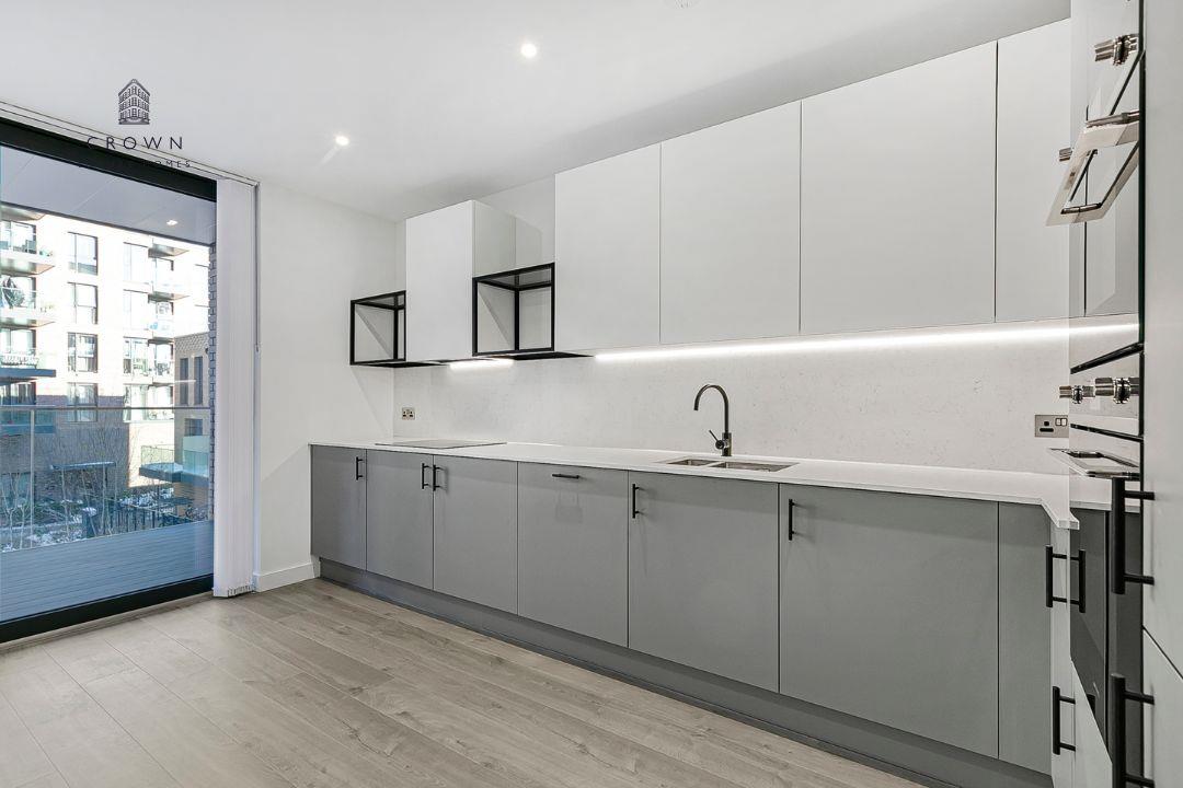 The spacious open-plan kitchen and living area flows effortlessly onto a private balcony, offering a quiet and unique vantage point rarely found in London apartments. Designed with both style and practicality in mind, the fully-fitted kitchen features high-quality integrated appliances, ample workspace, and room to cook, dine, and entertain with ease.